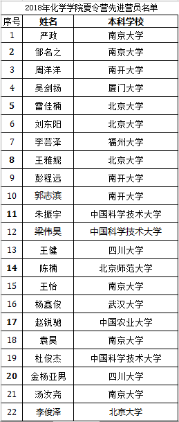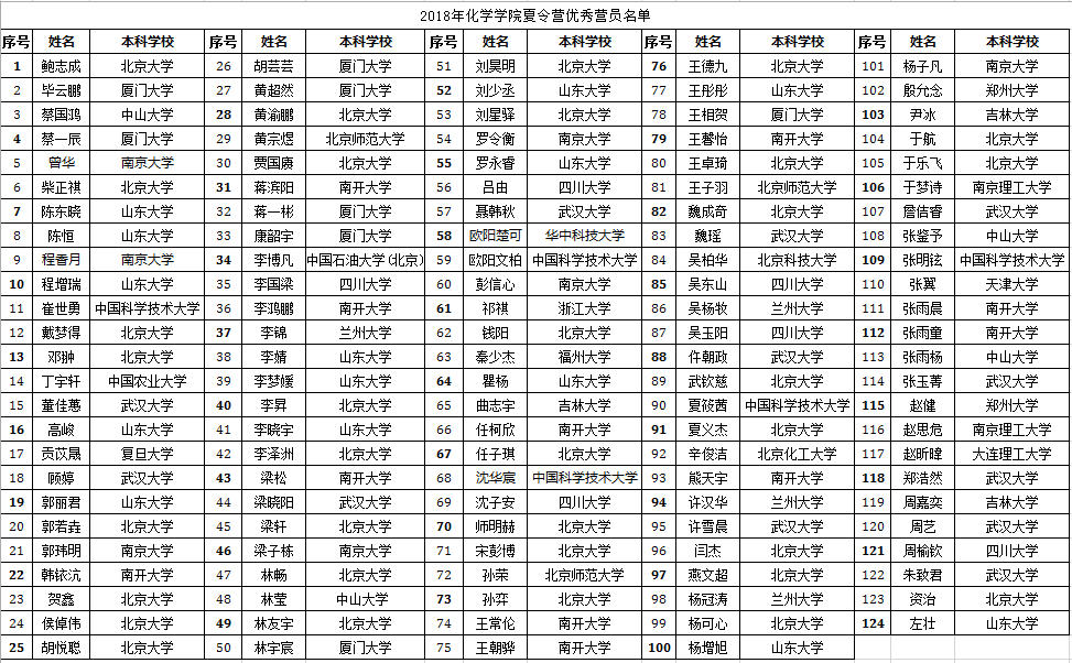 在为期4天的威尼斯欢乐娱人城v36762018年度全国优秀大学生化学夏令营活动结束之后,共评选出优秀营员124名,先进营员22名,名单如下所示(优秀营员按姓氏排序,先进营员按优先顺序排序)。