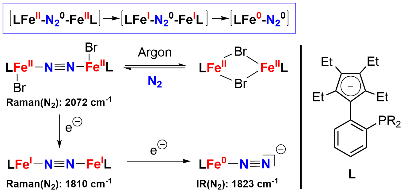 179. Gao-Xiang Wang#, Jianhao Yin#, Jiapeng Li#, Zhu-Bao Yin, Botao Wu, Junnian Wei*, Wen-Xiong Zhang, and Zhenfeng Xi*, Dinitrogen Activation at Cyclopentadienyl-Phosphine-Iron Complexes of Three Different Valences,