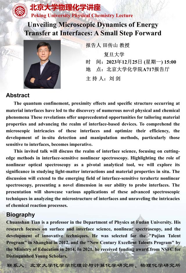 【威尼斯欢乐娱人城v3676物理化学讲座】Unveiling Microscopic Dynamics of Energy Transfer at Interfaces: A Small Step Forward