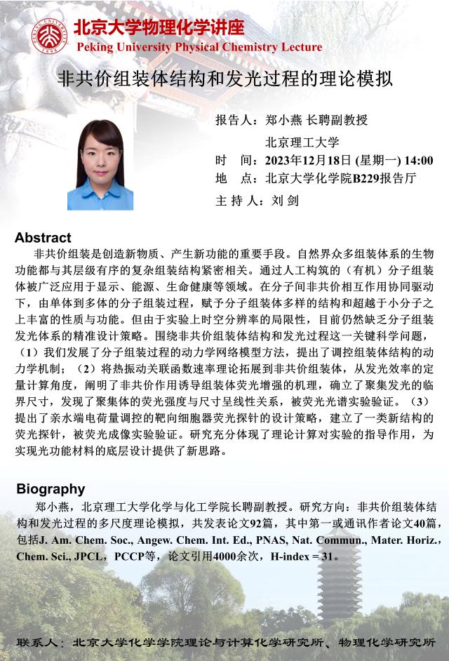 【威尼斯欢乐娱人城v3676物理化学讲座】非共价组装体结构和发光过程的理论模拟