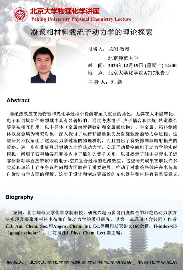 【威尼斯欢乐娱人城v3676物理化学讲座】凝聚相材料载流子动力学的理论探索