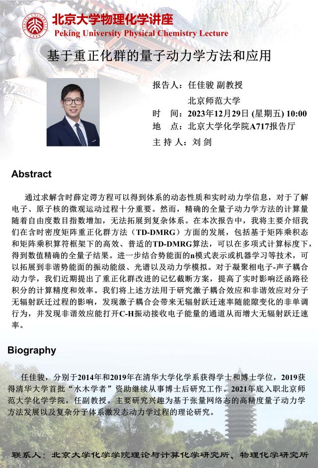 【威尼斯欢乐娱人城v3676物理化学讲座】基于重正化群的量子动力学方法和应用