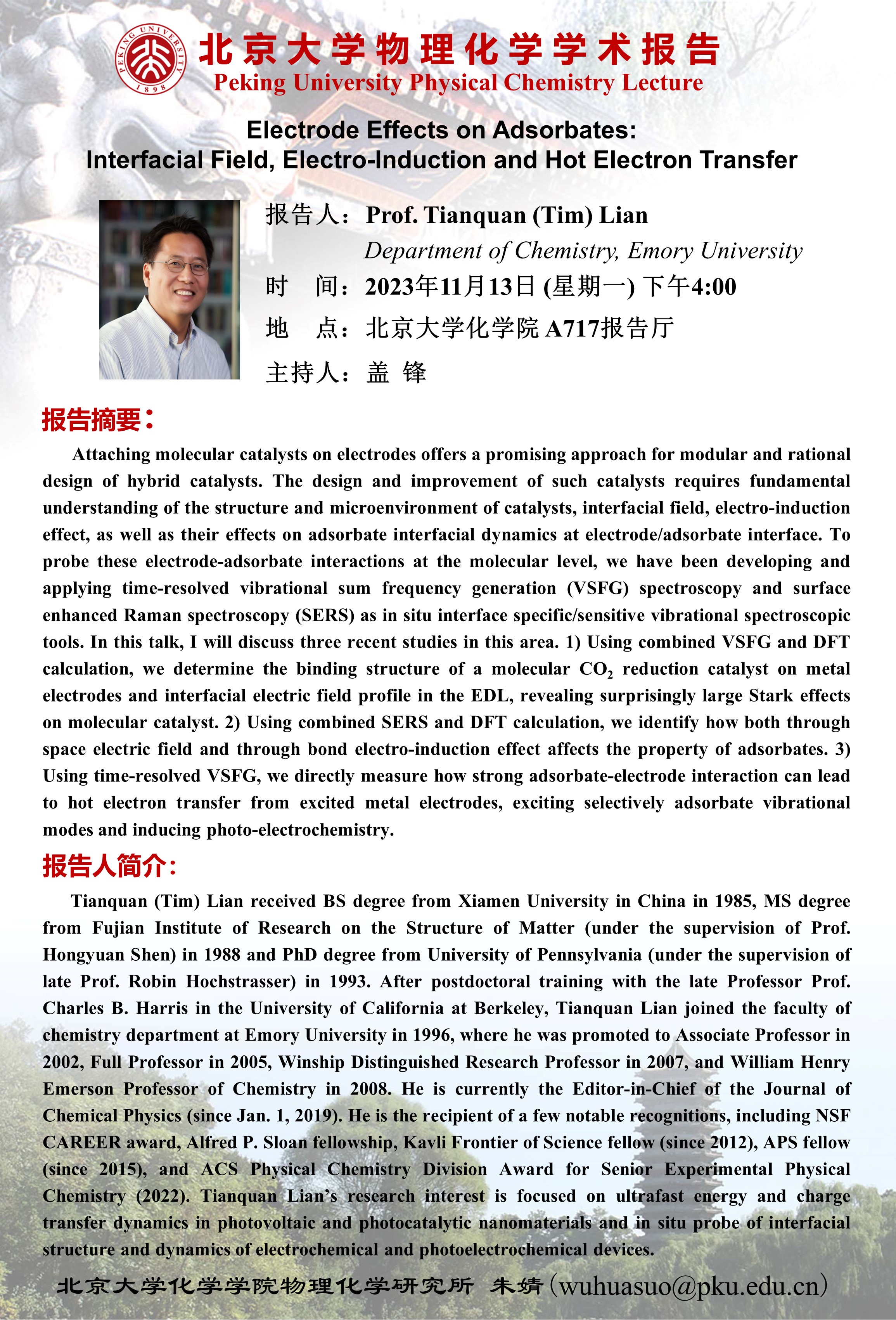 【威尼斯欢乐娱人城v3676物理化学学术报告】Electrode Effects on Adsorbates: Interfacial Field, Electro-Induction and Hot Electron Transfer
