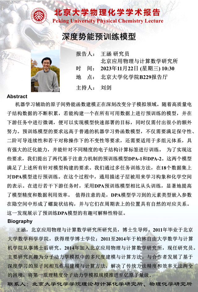 【威尼斯欢乐娱人城v3676物理化学学术报告】深度势能预训练模型