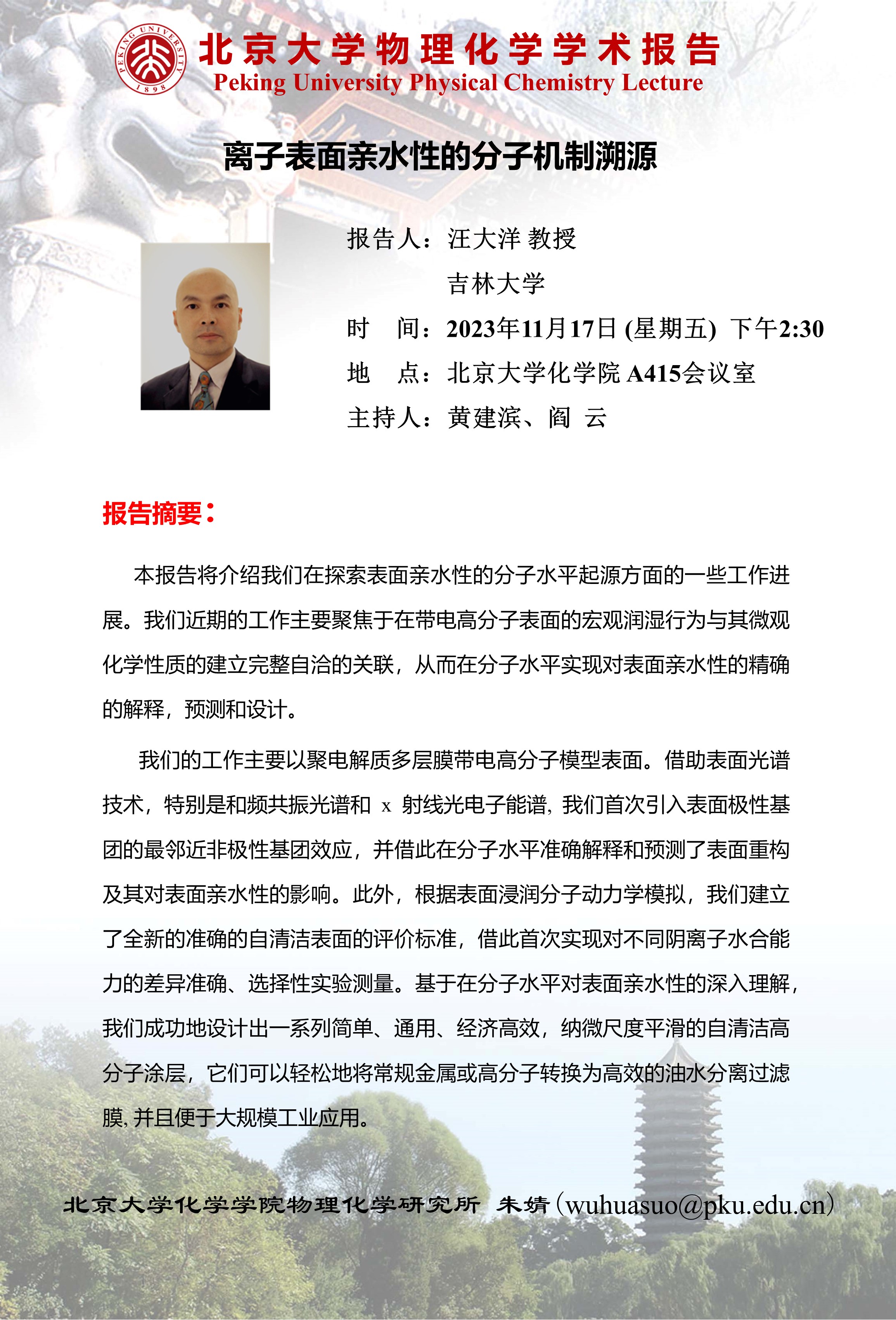 【威尼斯欢乐娱人城v3676物理化学学术报告】离子表面亲水性的分子机制溯源