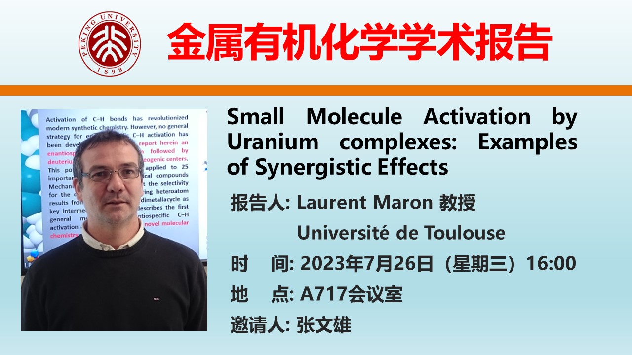 【金属有机化学学术报告】Small Molecule Activation by Uranium complexes: Examples of Synergistic Effects