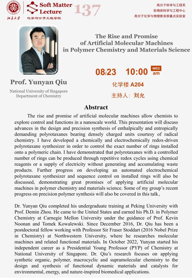 【Soft Matter Lecture 137】The Rise and Promise of Artificial Molecular Machines in Polymer Chemistry and Materials Science