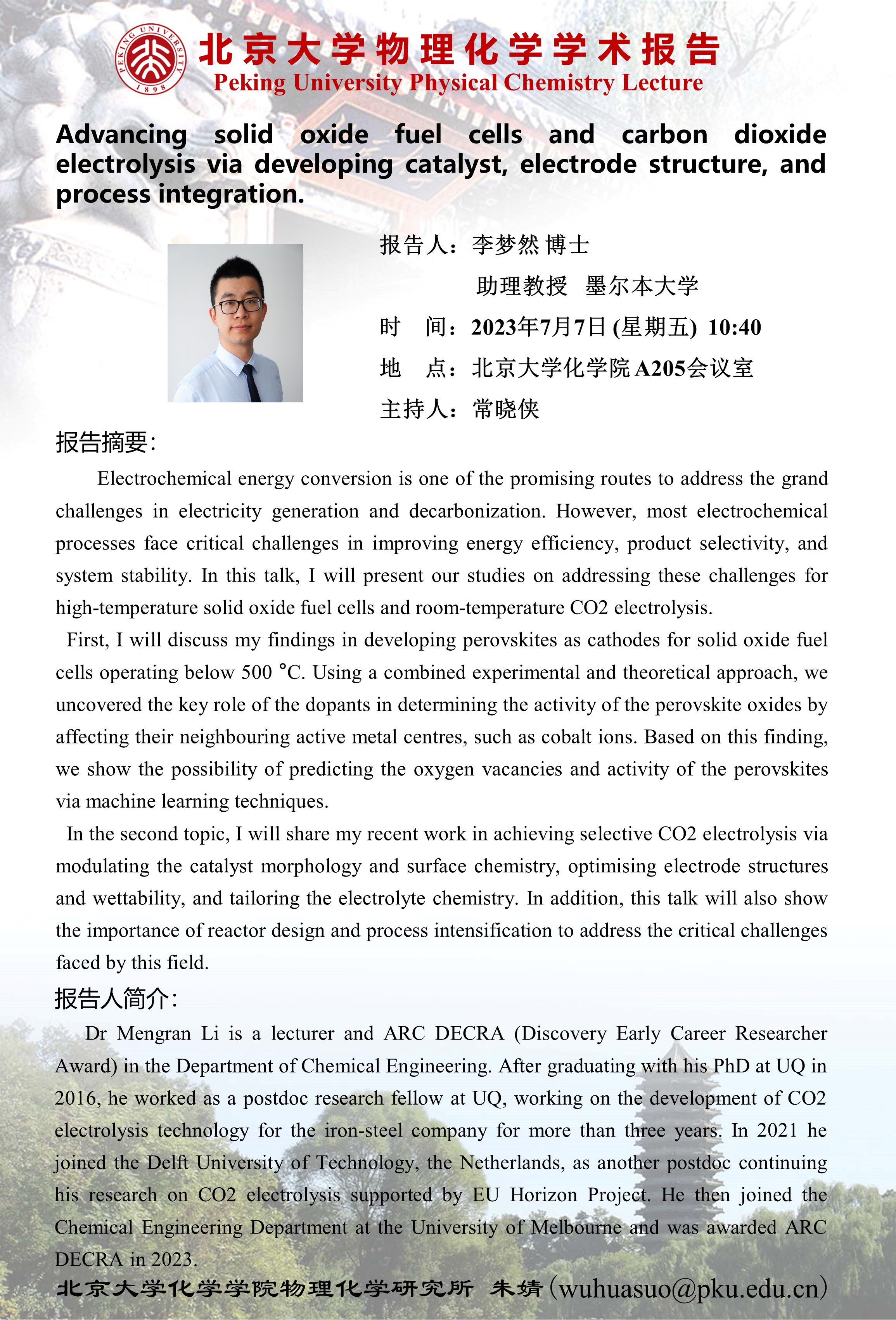【威尼斯欢乐娱人城v3676物理化学学术报告】Advancing solid oxide fuel cells and carbon dioxide electrolysis via developing catalyst, electrode structure, and process integration.