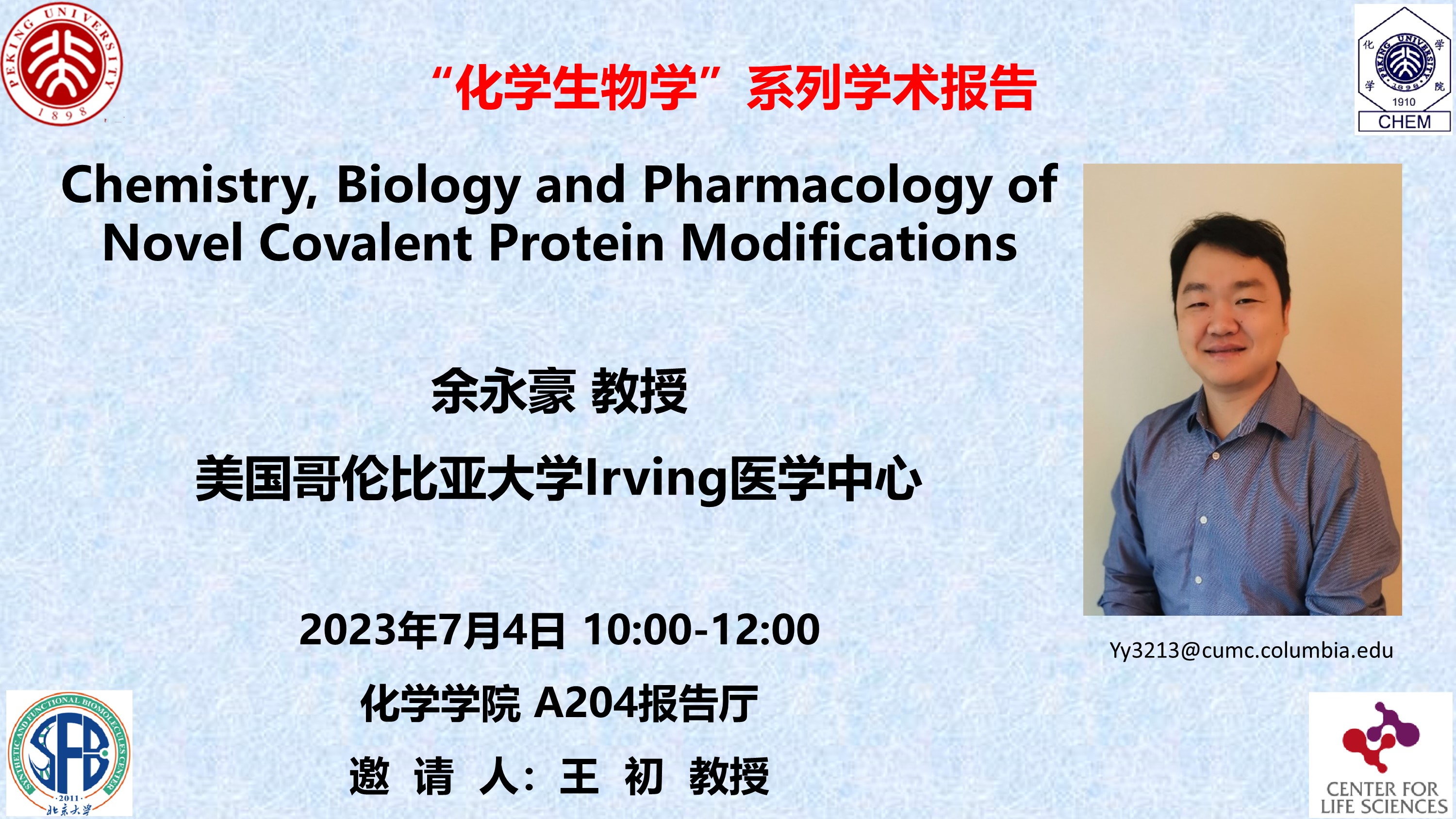 【“化学生物学”系列学术报告】Chemistry, Biology and Pharmacology of Novel Covalent Protein Modifications