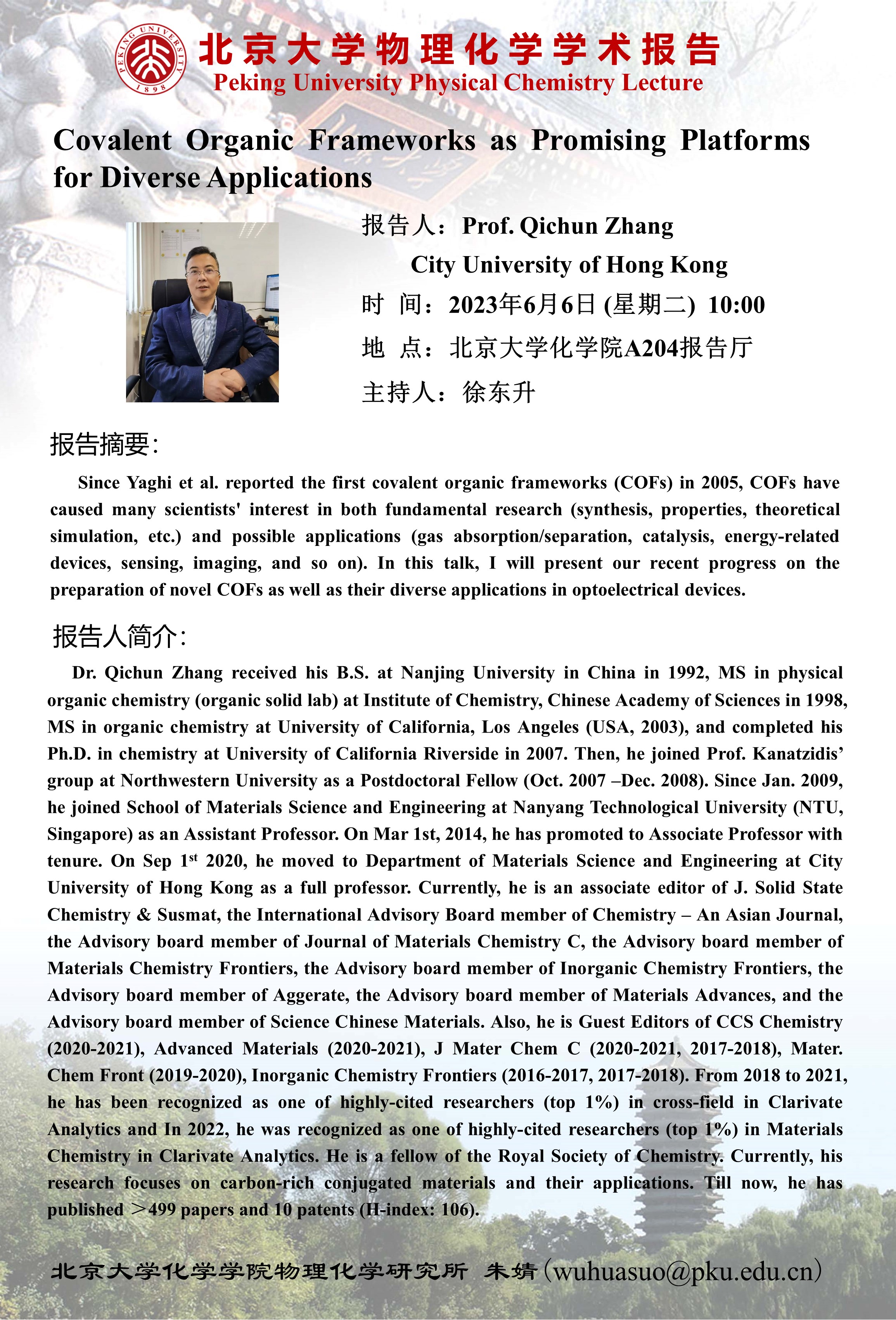 【威尼斯欢乐娱人城v3676物理化学学术报告】Covalent Organic Frameworks as Promising Platforms for Diverse Applications