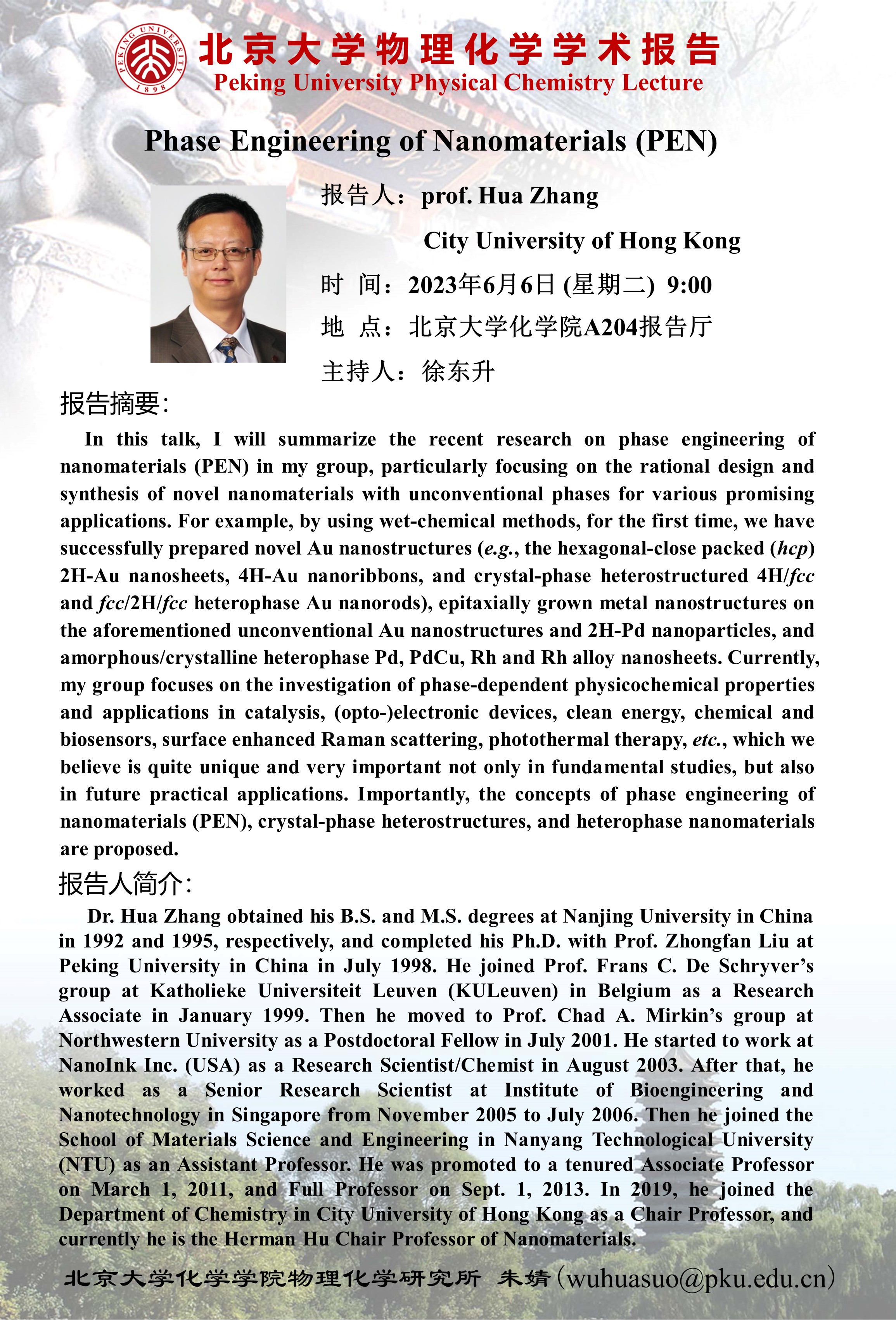 【威尼斯欢乐娱人城v3676物理化学学术报告】Phase Engineering of Nanomaterials (PEN)