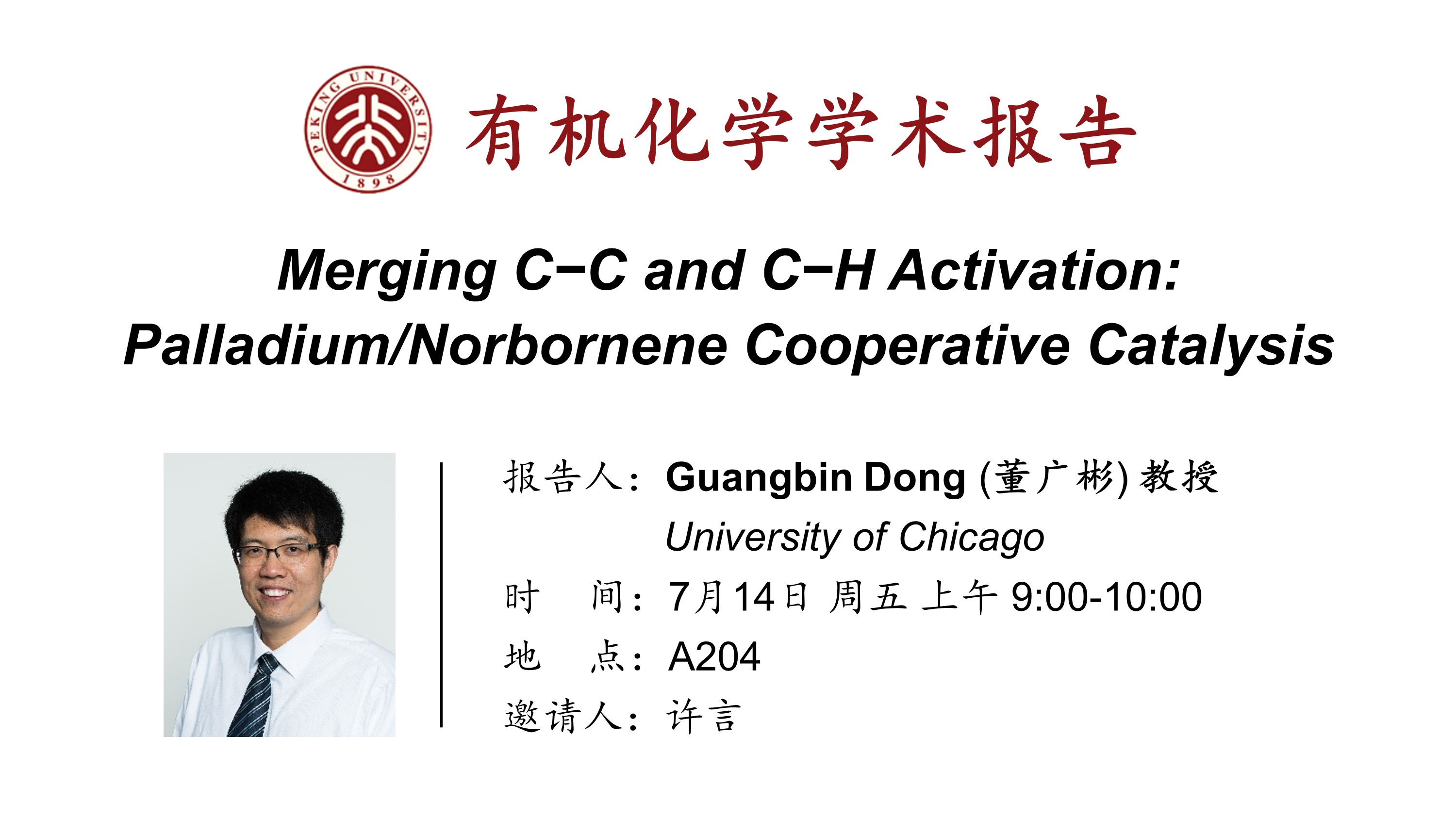 【有机化学学术报告】Merging C−C and C−H Activation: Palladium/Norbornene Cooperative Catalysis