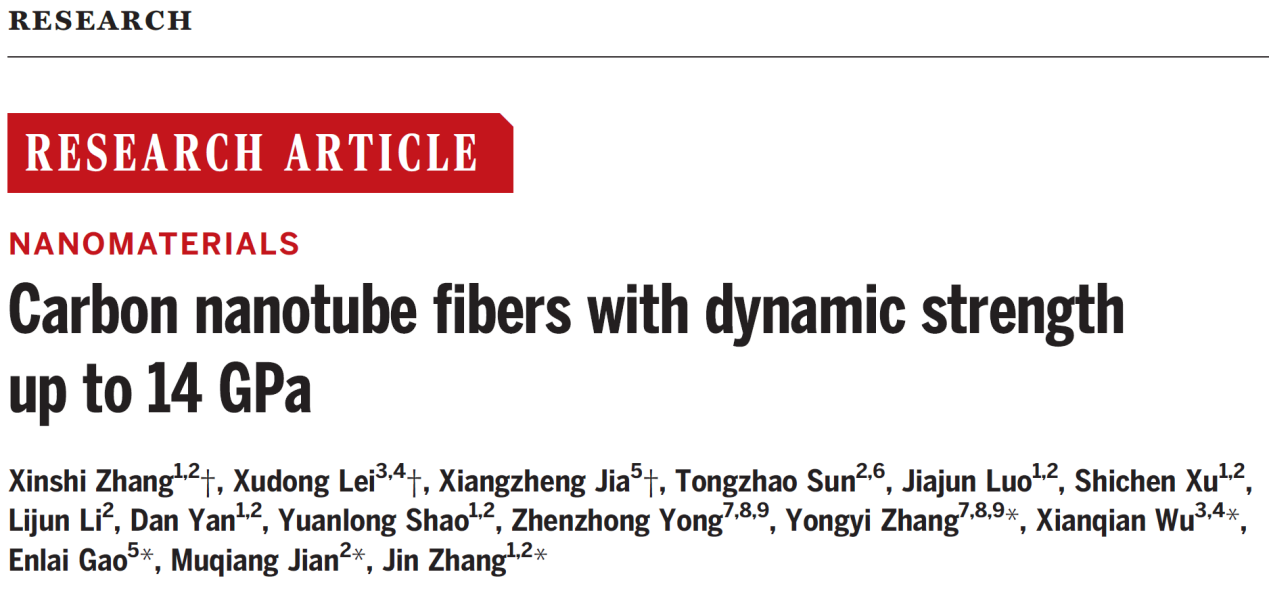 Science | Professor Jin Zhang and Collaborators Achieved Progress in High-Dynamic Strength Carbon Nanotube Fibers