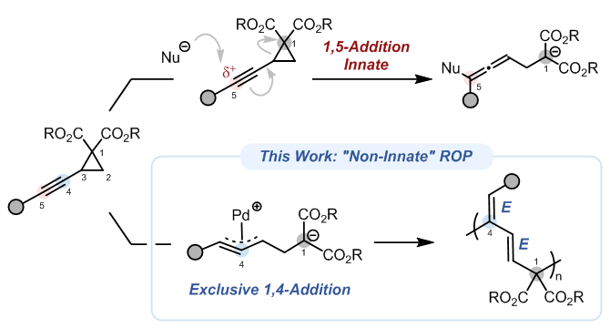 "Noninnate" Ring-Opening Polymerization: Palladium-CatalyzedStereoselective 1,4-Polymerization of Alkynylcycolpropanes