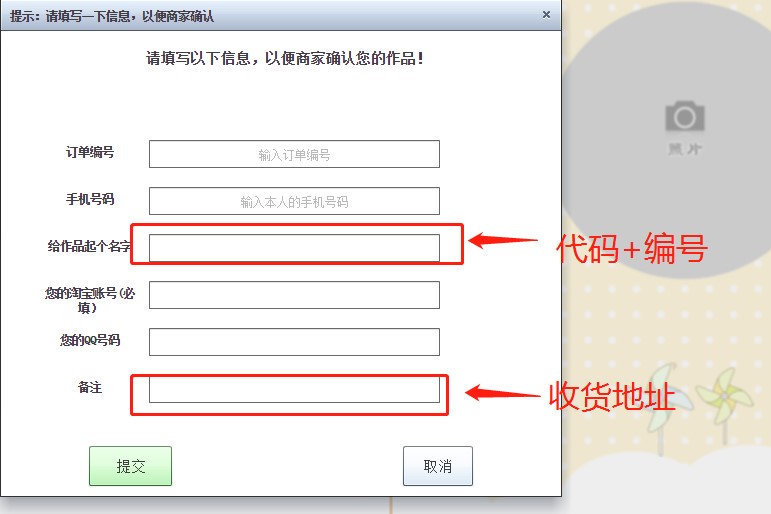 温馨提醒:获奖码请于2021年1月31日之前使用。点开挂历或台历的作图链接之后,提交时在“给作品写个名字”处填上获奖码,“备注”处填上收货地址和手机号(见下图)。其余地方不必填写。