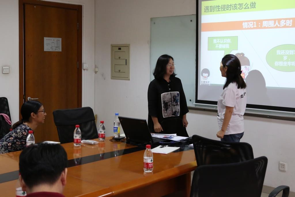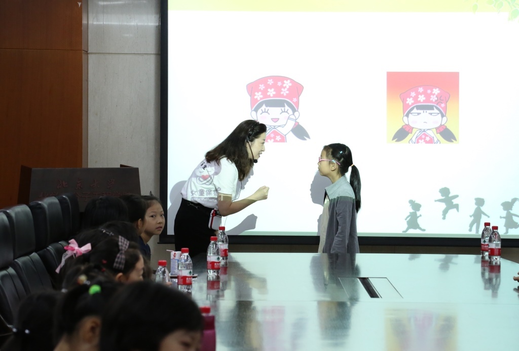 讲座分为徐玮老师主讲的亲子课堂和韦燕霞老师主讲的家长课堂,徐玮老师在亲子课堂上帮助孩子认识自己的身体,理解隐私部位的特殊性;帮助孩子理解哪些行为属于性侵害;帮助孩子在性骚扰最轻程度发生时就采取防护措施,以防更严重的性骚扰和性侵害的发生。以及一旦性侵害发生,如何最大限度的保护自己的生命,并了解在罪恶事件发生后的处理办法。在讲座中,徐玮老师充满智慧和趣味的问答、互动游戏和情景模拟,非常巧妙地给予了孩子说“不”的勇气。韦燕霞老师则在儿童防性侵害的常见误区、如何教会孩子保护自己、孩子的哪些异常值得警惕、发现孩子被性侵时家长怎么办,以及国内外有关法律法规等方面为家长们进行了详细的解释和说明,还通过互动方式,使家长们认识到给予孩子防止性侵知识的重要性和如何与孩子沟通和讲解。