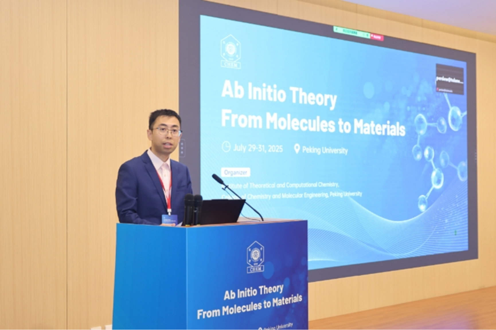 2025年7月29日-31日,由威尼斯欢乐娱人城v3676理论与计算化学研究所主办的 “从分子到材料的第一性原理理论”(Ab Initio Theory From Molecules to Materials)国际研讨会在威尼斯官网化院肖伦报告厅(101大教室)成功举办。研讨会为期三天,邀请到来自中国、美国、德国、法国、英国、澳大利亚、以色列的二十位电子结构领域的世界级顶尖学者,并吸引了国内众多高校、研究院所的约150位师生,聚焦密度泛函理论以及波函数理论的方法发展以及实际应额的历史沿革,深入详尽地介绍了最新进展,并对该领域的未来发展做出了展望。