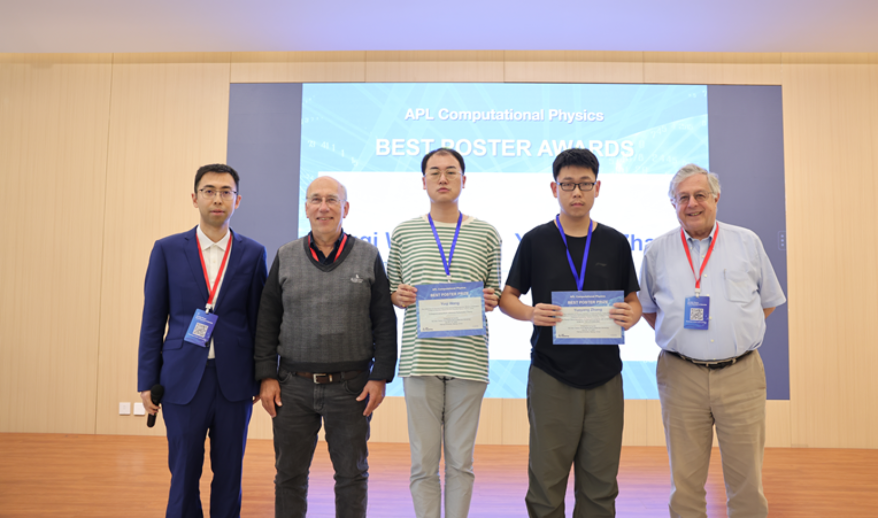 研讨会还特别设立了墙报展示交流环节。来自国内多所高校的学生以及青年研究人员共展示了34个墙报。最终经过组委会投票,评选出2个最佳墙报奖,分别是来自北京师范大学的王雨奇以及厦门大学的张越洋。闭幕式上由Hardy Gross教授和Roberto Car教授为两人颁发了最佳墙报奖证书。