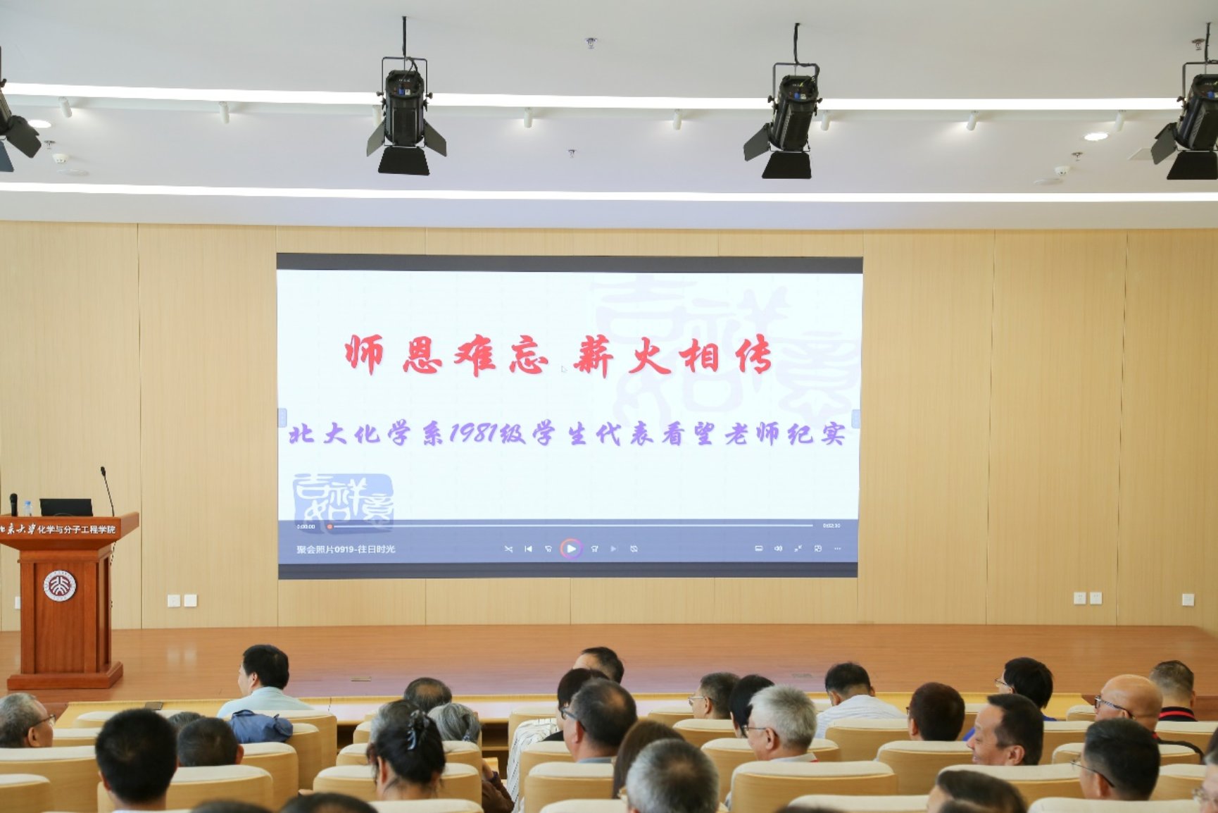 之后,81级校友共同观看了探望恩师的珍贵视频。画面中恩师们亲切的身影相继浮现,这唤起在场校友们对往昔求学岁月的深刻回忆。老师们当年的悉心教导与无私关怀,为校友们的学术发展与人生道路奠定了坚实基础。视频中传递的温情与敬意深深打动全场,会场内响起热烈而持久的掌声。