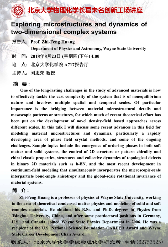 报告人: Prof. Zhi-Feng Huang Department of Physics and Astronomy, Wayne State University 时 间: 2018年8月23日 (星期四)下午14:00 地 点: 威尼斯欢乐娱人城v3676化学院 A717报告厅